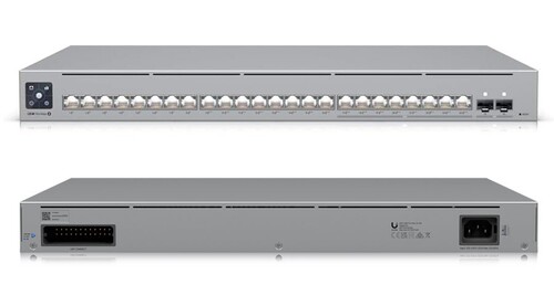 Мощный свитч Unifi Switch Pro Max 24 PoE с оперативной доставкой. Главные технические характеристики коммутатора Unifi Switch Pro Max 24 PoE: 16 портов GbE RJ45, 8 портов 1/2,5 GbE RJ45, 2 порта 10G SFP+, 8 PoE/PoE+ и 16 PoE++, общая доступная мощность PoE 400 Вт, максимальная потребляемая мощность 50 Вт, рабочая температура от -5 до +40 С, LCM-дисплей с сенсорным экраном 1.3 дюйма, вес 5.2 кг, размер 442.4х325х43.7 мм.